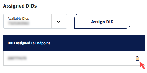 Under Assigned DIDs and DIDs Assigned to Endpoint, click on the trash icon next to the number you would like to remove: