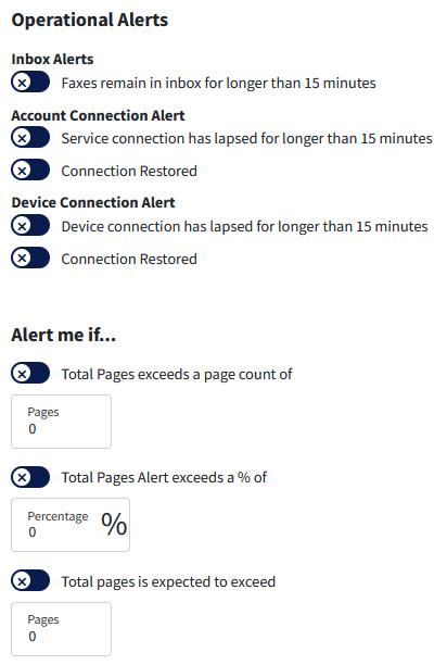 Operational Alerts relate to Inbox Alerts, the Account Connection Alerts, and the Device Connection Alerts.
