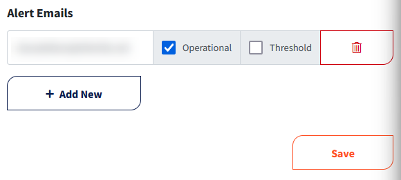 Determine whether Operational, Threshold, or both types of alerts should be in use per email address listed in Alert Emails: