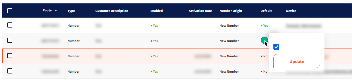 In the Default column of the desired number—click so that a pop-up appears. In the pop-up, click the checkbox and then click Update: