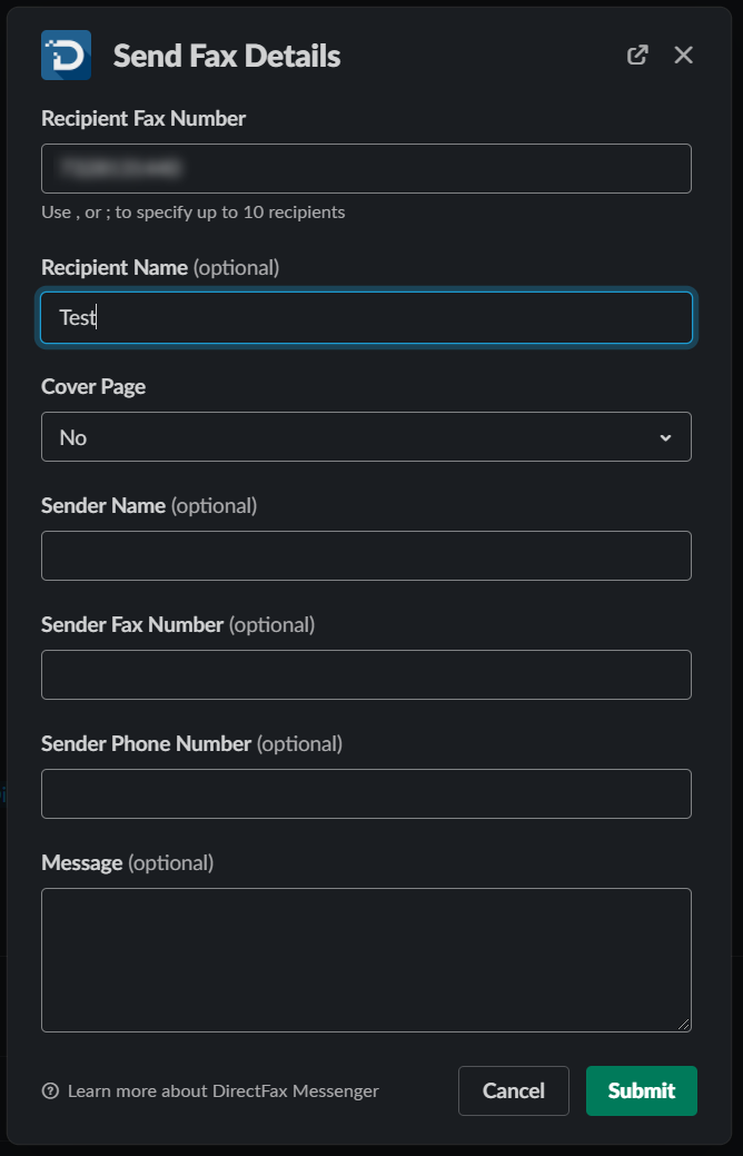 This tutorial provides instructions on how to send a fax with DirectFax Messenger for Slack.