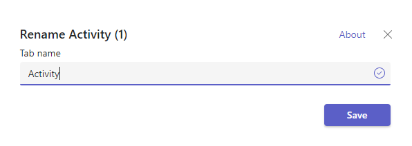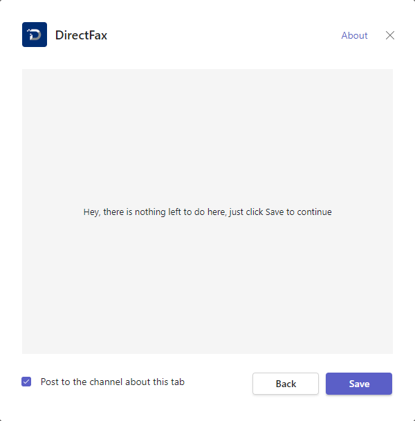 Click the Save button. The checkbox to Post to the channel about this tab can be left on or off:
