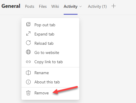 If an Activity tab was present before Step 4, the new tab will be named Activity (1). To delete the previous Activity tab, that may be having issues, right-click the original Activity tab select Remove: