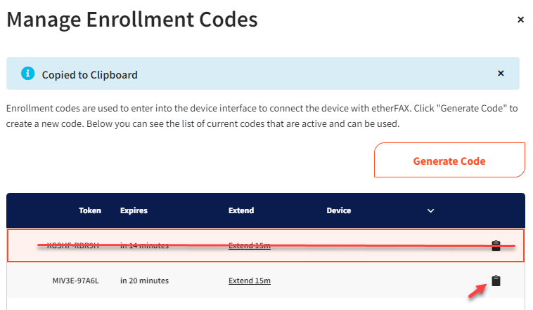 Enrollment codes expire in 15 minutes. If needed, expirations on codes can be extended in 15-minute increments.