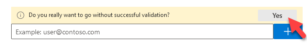 Before moving onto the next page, you will receive a prompt asking Do you really want to go without successful validation?, click Yes and then Next: