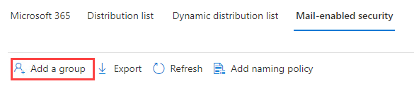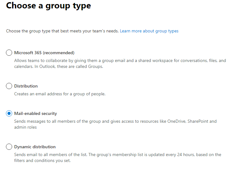 When choosing a group type, select Mail-enabled security and then click Next: