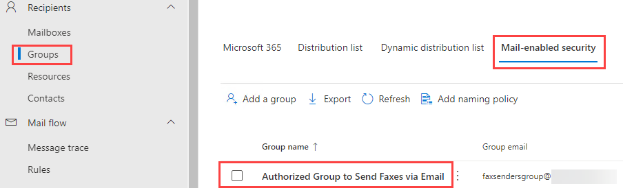 In the Exchange admin center (https://admin.exchange.microsoft.com) page, select Groups under Recipients: