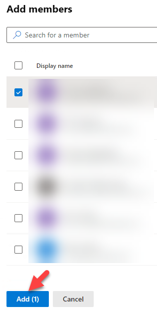 Click + Add members where you will be able to either search for members or by clicking the checkbox near any suggested members: