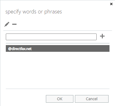 On the specify words or phrases pop-up enter @directfax.net or @directfax.ca depending on what you have chosen on previous steps.