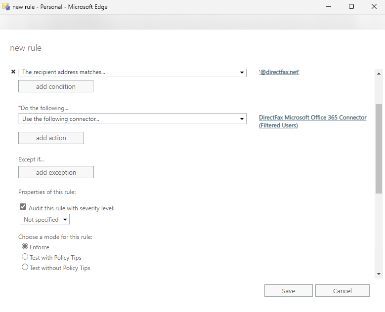 This article provides instructions on how to set up your Microsoft 365 email connector where only select users from your organization are allowed to email-to-fax through DirectFax Email Services.